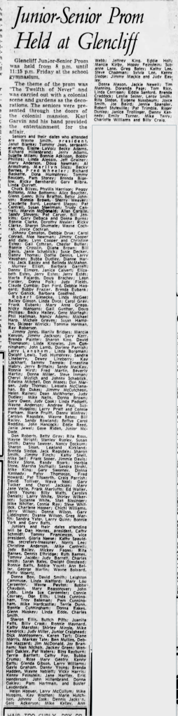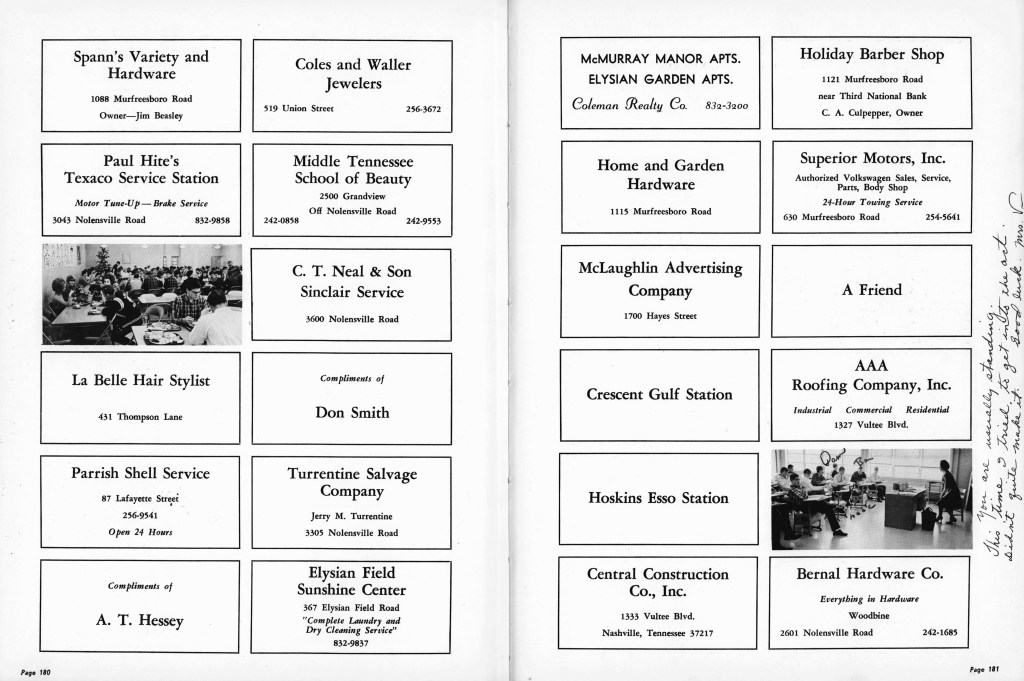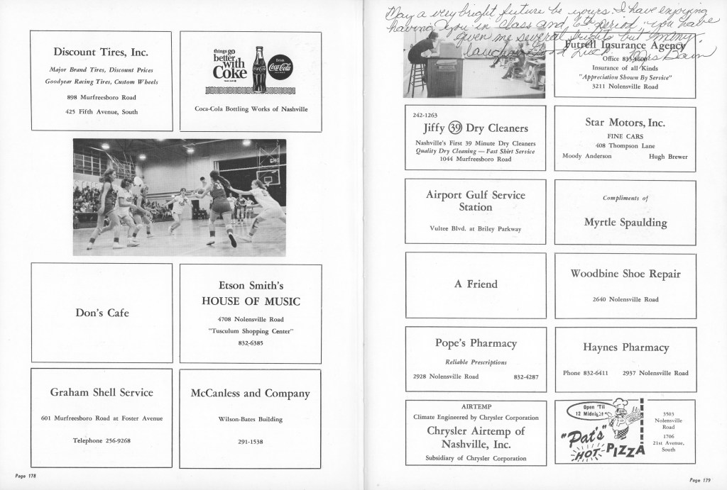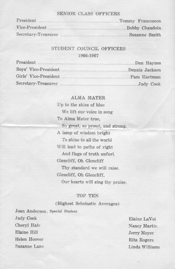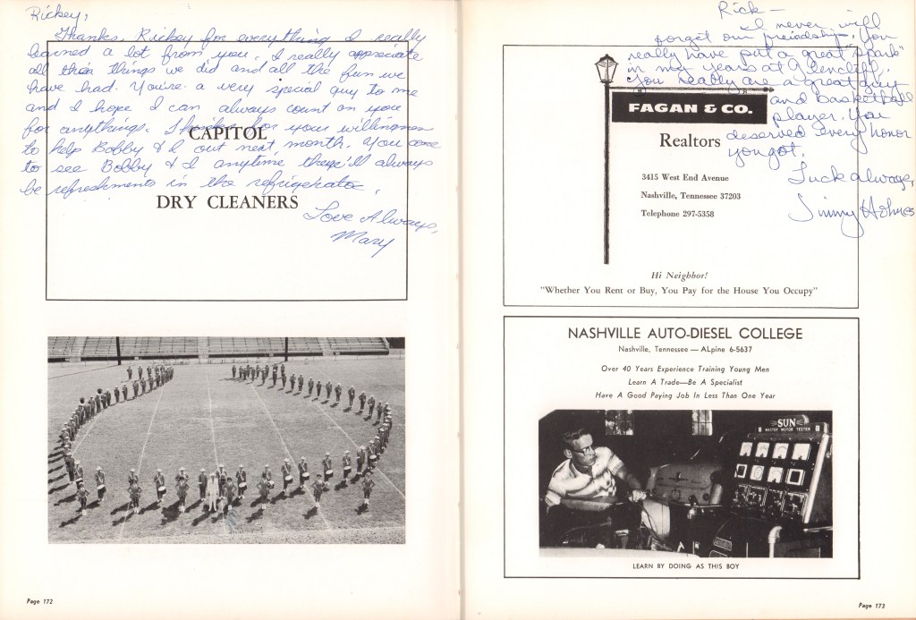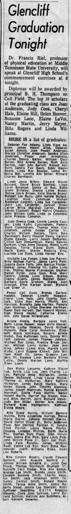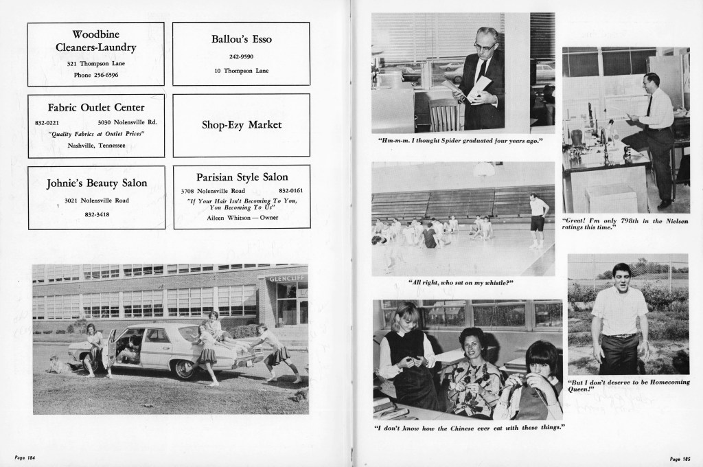 The area in which Glencliff High School is located was until recent years fertile farmland lying on the outskirts of Nashville. This section remained largely unpopulated until the late 1950’s, at which time industrial expansion and metropolitan growth led to extensive residential development, which yet continues to characterize this area. Dominated by such industrial and commercial establishments as AVCO, Aladdin Industries, and the Municipal Airport, the area inevitably grew, attracting secondary businesses, churches, schools, and finally a high school.