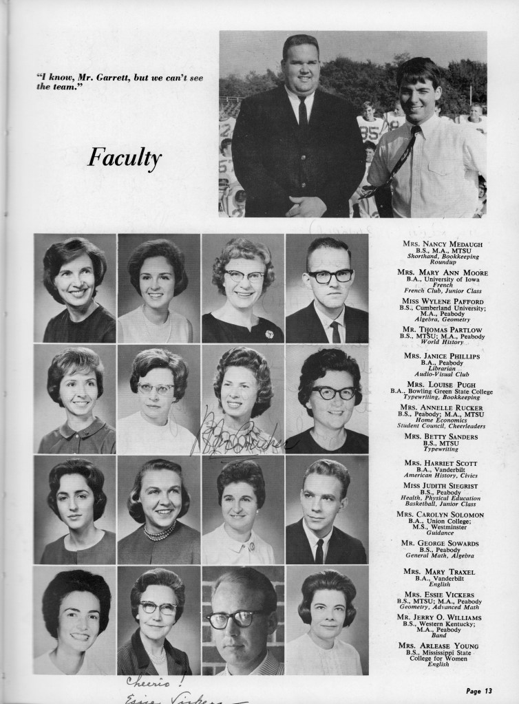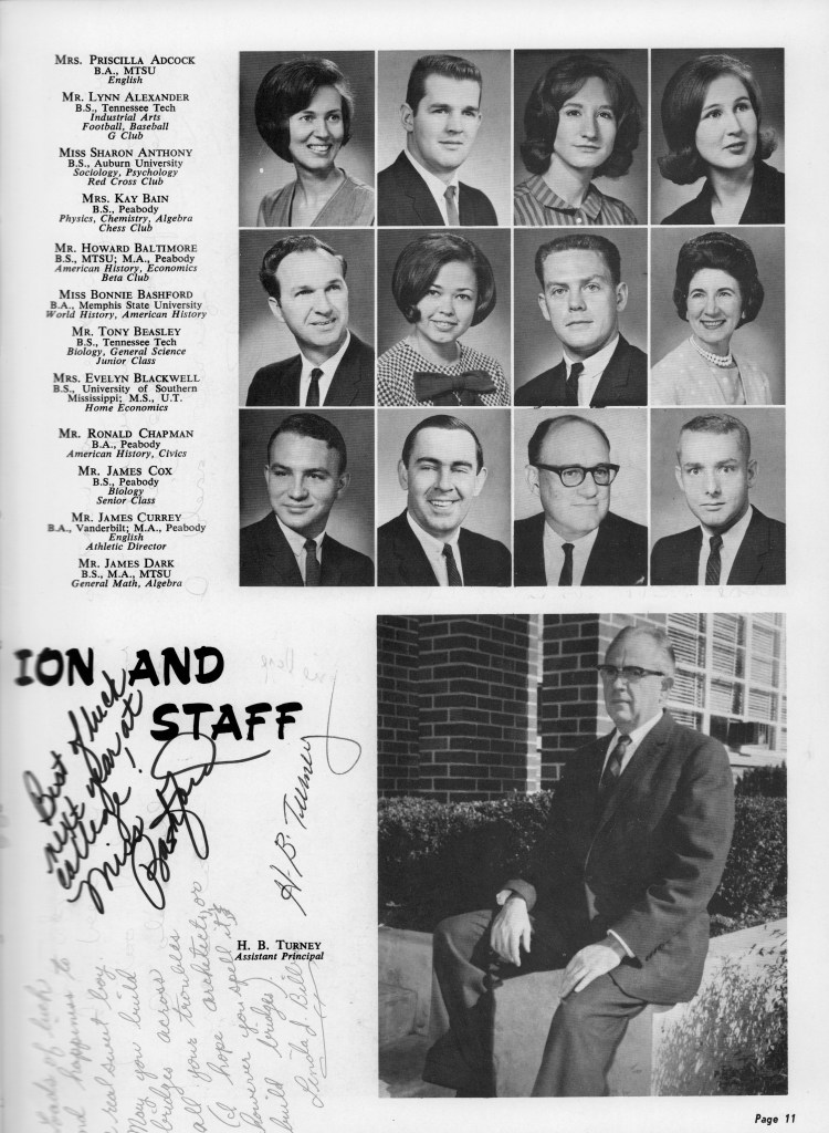 Mr. B. H. Thompson, principal of Glencliff, has deep roots in Davidson County having coached for 21 years prior to becoming principal. Since that time, he has performed in an outstanding manner his duties of building Glencliff into one of the finest schools in the metropolitan school system. His education background includes a Master of Science and Bachelor of Science from Middle Tennessee State College.