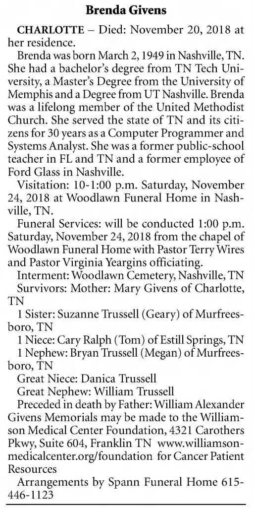 ‘Brenda’ Gladys Givens (1949 – 2018)