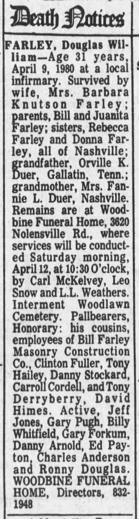 Douglas ‘Doug’ William Farley (1949 – 1980)