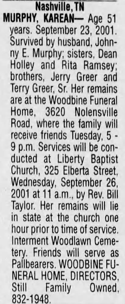 Ethel ‘Karean’ Greer Murphy (1949 – 2001)