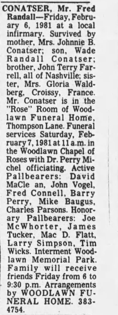 Fred ‘Freddie’ Randall Conatser (1948 – 1981)