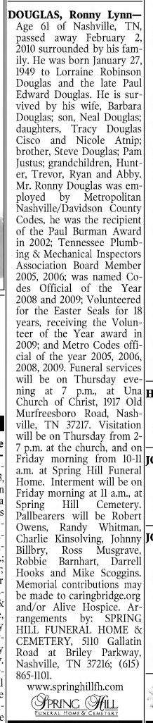 ‘Ronny’ Lynn Douglas (1949 -2010)
