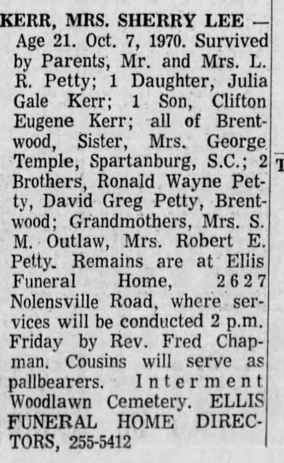 ‘Sherry’ Lee Petty Kerr (1949 – 1970)