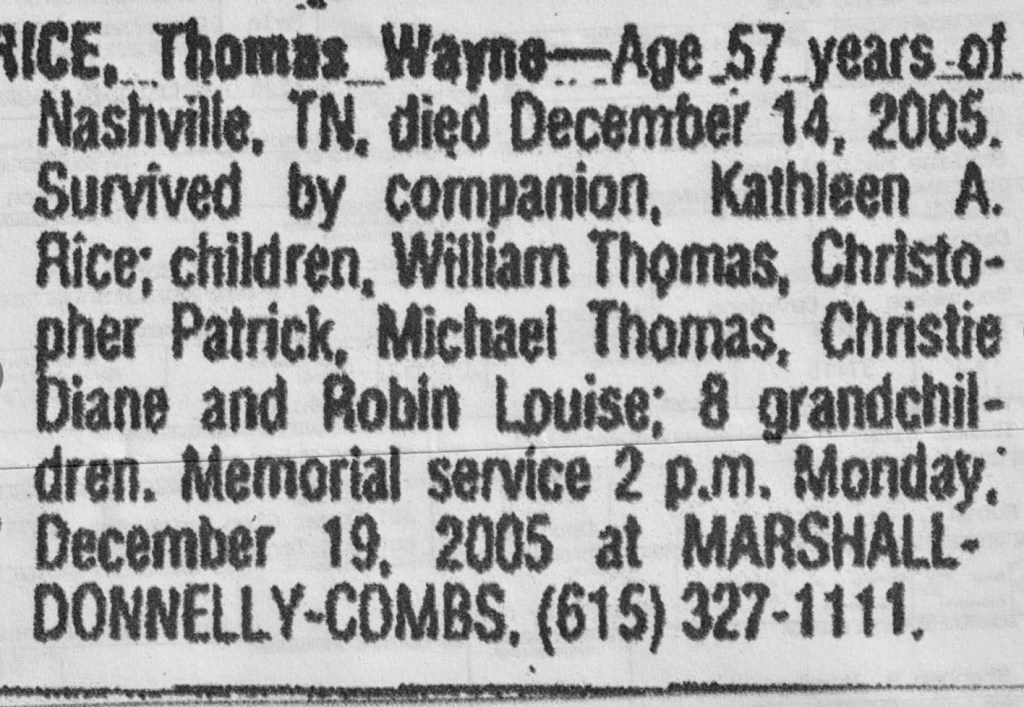 Thomas ‘Tom’ Wayne Rice (1948 – 2005)
