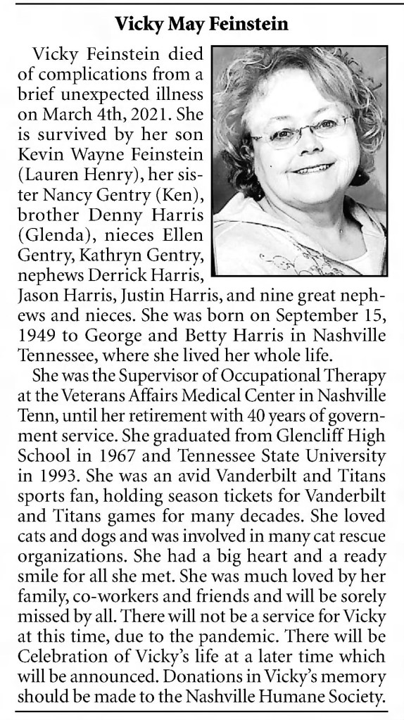 ‘Vicky’ May Harris Feinstein (1949 – 2021)